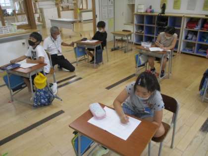 3年生の1時間目は算数の授業でした。この授業では、前にならった「大きな数」の表し方について復習をしました。「○千○百○十○万○千○百○十○」といった数字について表し方を学びます。まずは先生が言った数を数字で表します。言わば聞き取りのようなものです。桁数が多いのでこれがなかなか聞き取れません。また逆に、書いてある数字を正しく読むことにも取り組みました。少し難しそうでしたが、○をもらった時の嬉しそうな笑顔が素敵でした。