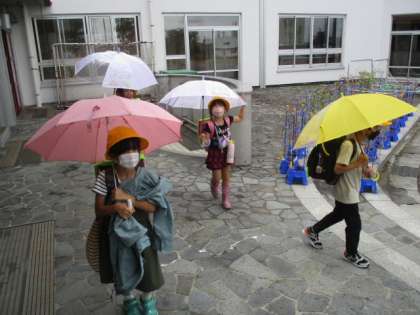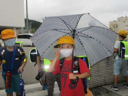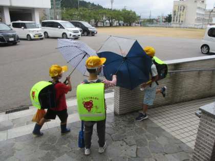 金曜日の1年生は清掃後に放課です。今日も他学年より一足早く下校していきました。下校の際、傘が必要なほどの雨は降っていませんでしたが、傘をさして楽しそうに帰って行きました。