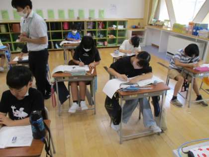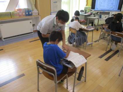 3時間目の4年生は算数の授業でした。今日の学習内容は(3桁)÷(2桁)のわり算でした。1つの練習問題を解くのにもかなりの手間と時間がかかっているようでした。がんばれ!