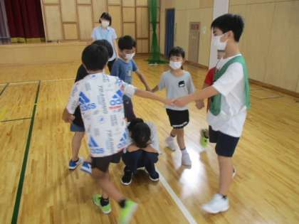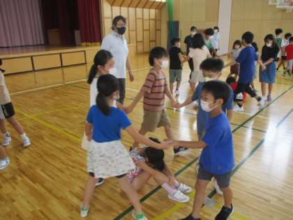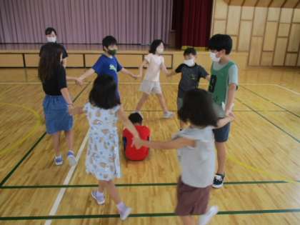 今日の「歌遊びコーナー」では、「かごめかごめ」で遊びました。まずは歌の練習から始めて、その後には輪を作って楽しみました。