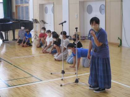 9月のうた「星空はいつも」の練習です。指導の先生からは、盛り上がる部分にしっかりと高い音が出せるよう、手を使った方法を教わりました。