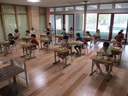 給食準備の動画あり(3、4年生) ⇒ 左の「動画(パスワード付)」