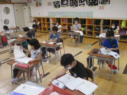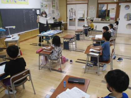 5時間目の2年生は国語の授業です。今習っているのは「どうぶつ園のじゅうい」というお話で、この時間には自分が読んで「はじめて知ったこと」「おどろいたこと」「もっと知りたいこと」を文にしていきます。この課題が出されて直ぐ、お話を読み返し始めた児童が何人も見られました。