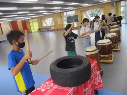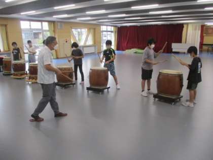 最後は和太鼓クラブです。練習では、みんなで同じリズムを刻んでいきますが、少し集中が途切れるとリズムが微妙にずれていくようです。