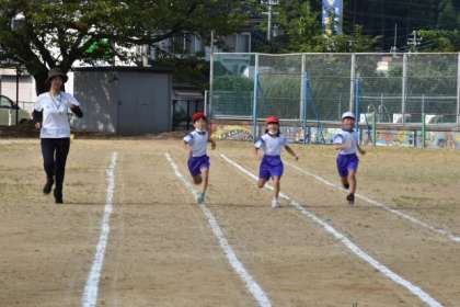 1年生の「さわやか体育」は「走」の順番です。今日は練習の途中に、担任の先生が加わるという出来事もありましたが、さすがは若手の先生、笑顔で1年生と一緒に走っていました。