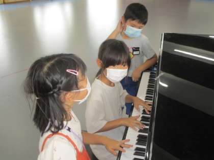 ピアノを弾いたりスネアドラムをたたいたり