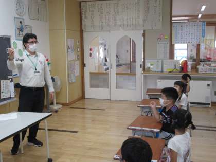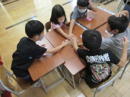 今日の外国語活動では、野菜の単語を学び、グループでカルタをしました。やる気満々で、全力で札を取っていました。真剣な表情も素敵でした。