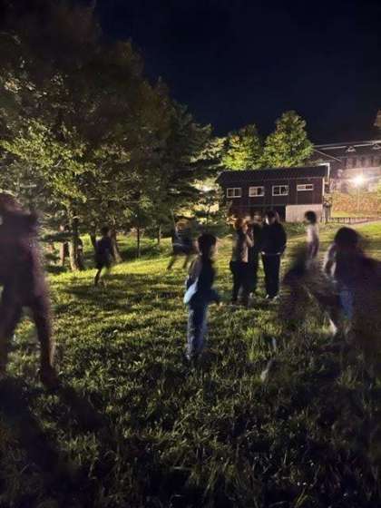 夜の活動の続きです。2枚目の写真に写っているのが宿泊棟です。