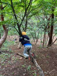 下:森では定番の木登りです。