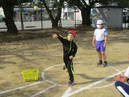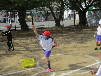 3年生は今朝の「さわやか体育」が「投」の順番で、ソフトボール投げに取り組みました。よく飛ばす児童で30m近くの記録が出ています。