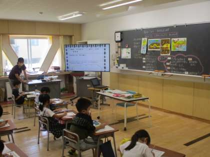 3時間目の1年生は道徳の授業で、「わきだしたみず」という教科書のお話を通し、「人のことを自分のことのように考える」ことをテーマに学習しました。