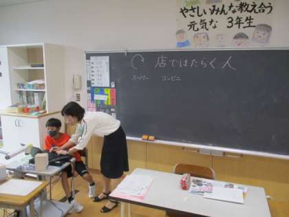2時間目の3年生は社会科の授業でした。この学習は「わたしたちの食をささえる人々」をテーマにしています。今日の授業では身近なスーパーについて、「なぜその店に行くのか(選ぶのか)」という課題について考えを巡らせました。