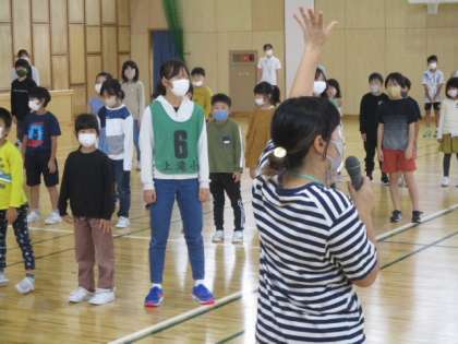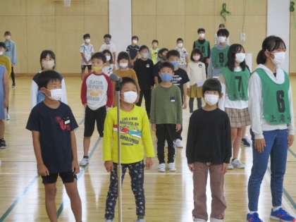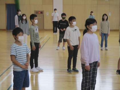 全校で歌う「9月のうた」は「星空はいつも」です。6年生の担任の指導を受け、ボリュームアップを図ります。