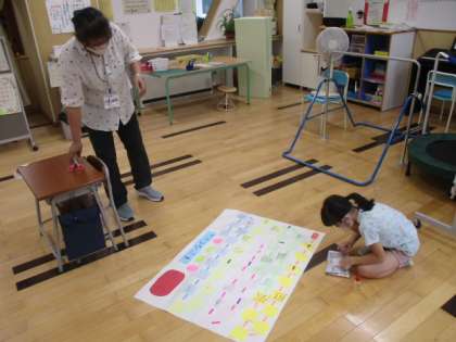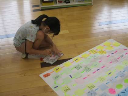 5時間目のひまわり級では、今度計画している大庄小学校との交流学習に向け、その準備をしました。準備の内容は双六づくりです。以前に大庄小学校に行った時にも双六で交流しましたが、その時のように楽しみたくて準備を進めています。