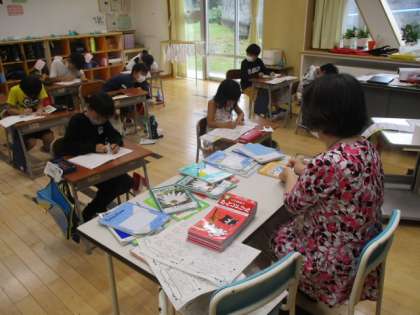 2年生は5時間目の授業で、漢字練習をしました。今日習ったのは「番」「週」「池」「食」の漢字で、早く終わった児童は算数の直しをしました。