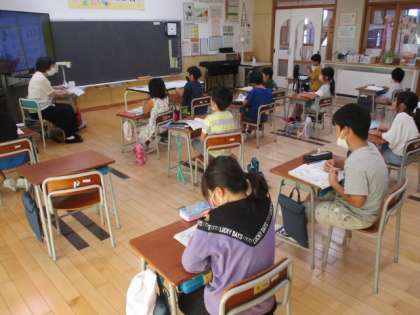 これから進めていく学習は「何を 作ろうかな。」という題材で、動くおもちゃを作っていきます。今日はそのオリエンテーション的な位置付けの時間で、担任の先生から色々な案を紹介してもらって自分のおもちゃのイメージをふくらませていました。