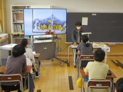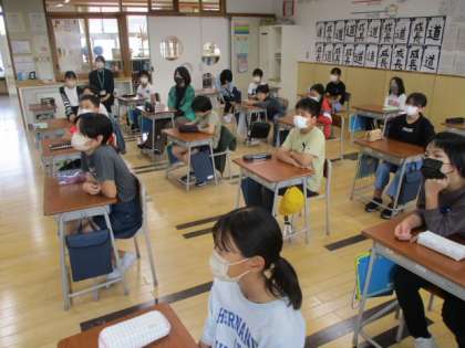 今朝は、上学年がお話会の日でした。写真は5年生の様子です。