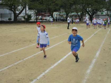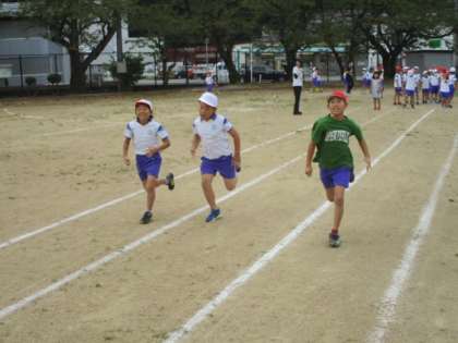 走り幅跳びを終えた3年生は、50m走に取り組みました。
