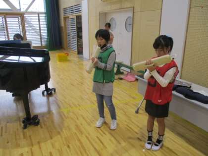 今朝は全校児童が体育館に集まって、お馴染みの「ミュージックタイム」がありました。