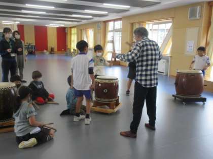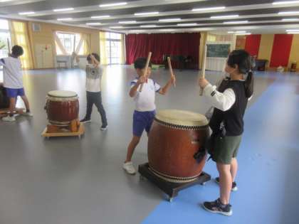 今日も、薬師太鼓の名人に教えていただきました。2回目の練習日です。