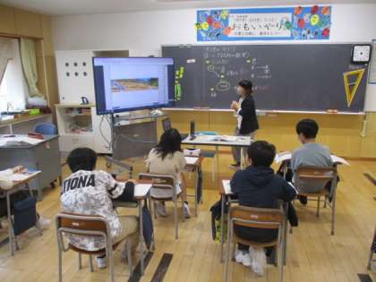 6年生の2時間目は理科の授業でした。崖に見られる地層についての学習ですが、何だか「ブラタモリ」を見ているように感じました。