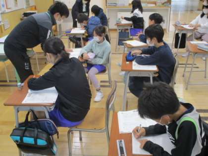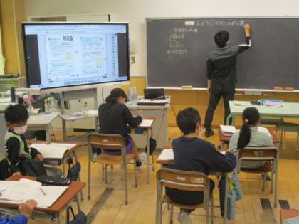 2時間目の4年生は算数の授業でした。今日も「概数」の学習で、与えられた数を「万の位」で四捨五入して表すことに取り組んでいました。