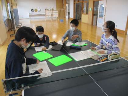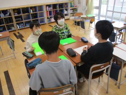 3時間目の6年生は国語の授業でした。この授業では、グループ毎に宮沢賢治の「やまなし」の音読練習をしました。「他のグループよりも上手にやるぞ!」と意気込んでいるグループもありましたので、お互いに披露し合う機会が設定されているのでしょうか。
