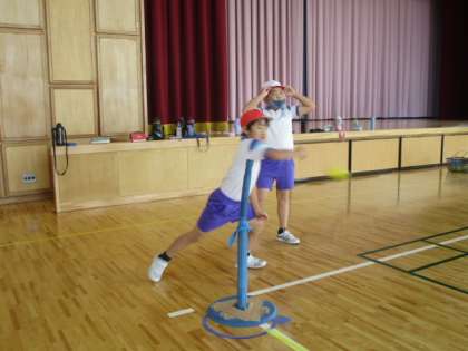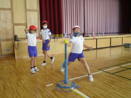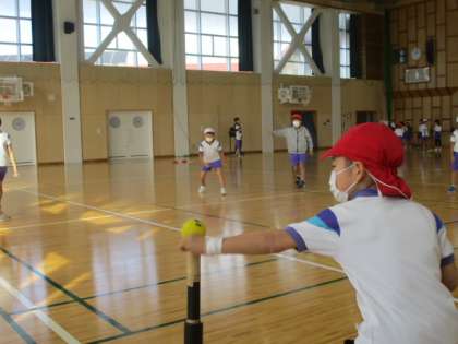 5時間目の3年生は、4年生と合同の体育でした。2学年合わせて行ったのがハンドベースボールです。攻撃側も守備側もだいぶ慣れてきたようです。