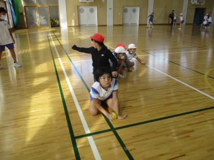 守備側がボールを受け、写真の様な隊形を作った時に、ランナーが塁まで到達していなかったら「アウト」です。また、この隊形ができるまでの間にランナーが塁を往復できたら2点です。もちろん守備側がノーバウンドでボールをキャッチしても「アウト」になります。