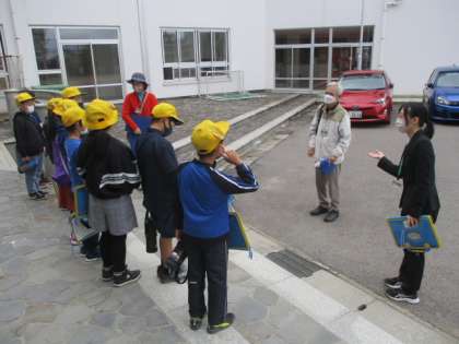 3年生は1・2限を使って地域(上滝)探検に出かけました。これは総合の学習で、名付けて「ぶら上滝〜歩いて、見て、聞いて、みりょくを伝えよう〜」といいます。今日は地域の歴史に詳しい講師の方をお招きし、この活動に同行してもらいます。