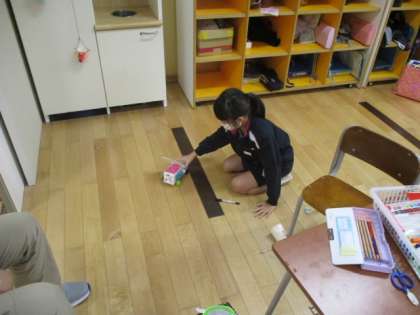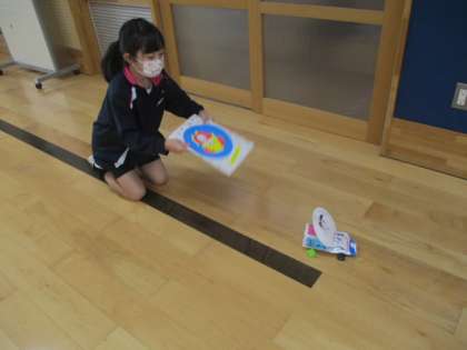ひまわり級も2年1組に混じって、「うごくおもちゃをつくろう」で作ったおもちゃで遊びました。