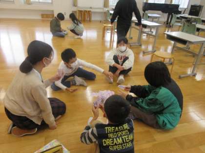 先生が学習のためにもってこられたトランプで、ばば抜きが始まってしまいました。楽しそうです。それから、絵本の読み聞かせを聞いています。