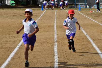 以前行った下学年の記録会で走れなかった2年生から、50m走のスタートです。