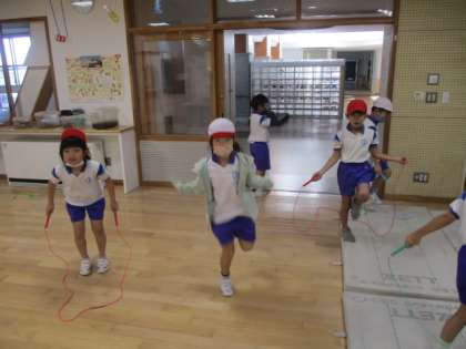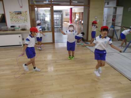 1年生が縄跳びの練習をしていました。「先生見て!」と1人が言うと、「私も!」「私も!」…とみんなが技を披露し始めます。本当に「エネルギーに満ちあふれている」といった感じです。