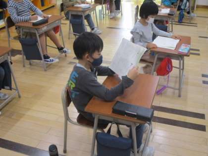 教室をのぞいた時には、教科書の「丸読み(句点で交代する読み方)」をしているところでした。
