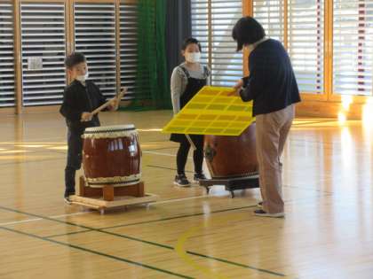 3年生は、学習発表会に披露する薬師太鼓の練習をしていました。パートごとに分かれて特訓中です。