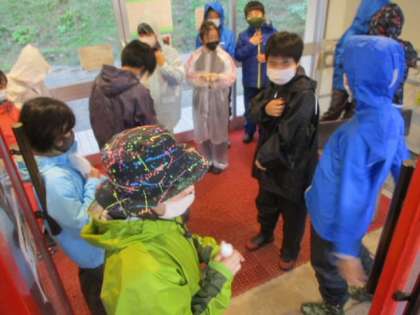 雨の降る中、各班の班長たちはカッパに長靴を履き、ナイトハイクの下見に出かけました。暗い夜の道を歩くナイトハイクでは、間違った道に迷うと大変なことになります。そこで班長たちには予め明るい内に道を覚えてもらいました。とても大切な役割です。