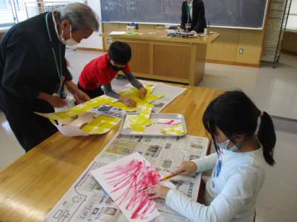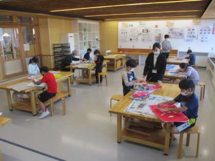 3年生が図工の授業に取り組んでいます。きれいに色の付いた画用紙を好きな形に切り、いったいどんな作品ができるのでしょうか。とても楽しみです。