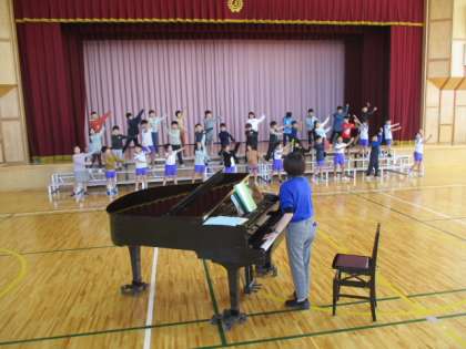 体育館を使って、2・3・4年生が区域音楽会の練習をしました。そこで披露する歌は、いつものミュージックタイムで練習してきた歌です。