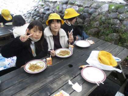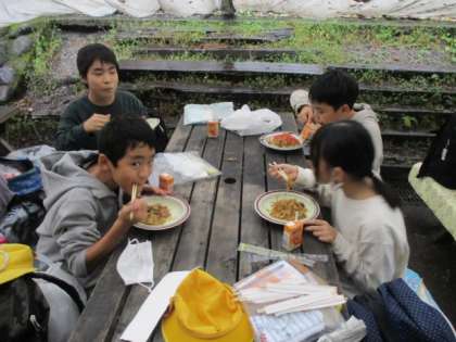 完成した焼きそばを食べているところです。今日は立少のバイキングは食べませんから、しっかり焼きそばを食べてくださいね。
