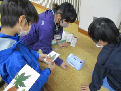 10月17日(火) 宿泊学習29「木の葉のしおりづくり」(5・6年生)