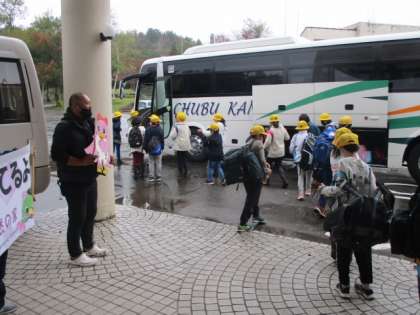 所の方々に見送られバスに乗車。学校でも帰校式を行い、担任の先生からは「家に着くまでが宿泊学習です」と、帰宅途中にも気を抜かないようにと注意がありました。