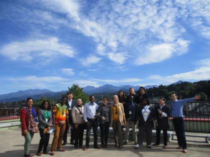 本日の午前中、上滝小に素敵な素敵なお客さんがありました。これはJICA(国際協力機構)の事業「JICA青年研修事業『初・中等教育(教育行政)』で、視察のため来日した11カ国10名の青年たちです。