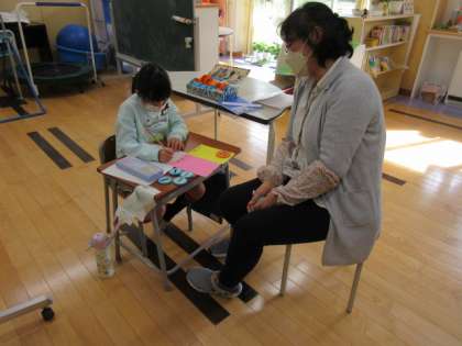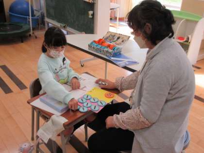 引き算の復習をしています。具体物を使って、何度も繰り返し計算することで、理解を深めることをねらっています。