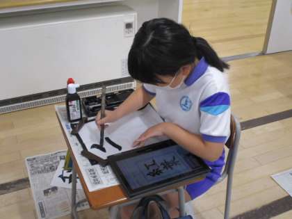 4時間目の4年生は書写の授業でした。それぞれが違った字を書いていたようですが、お手本をしっかりと見て、集中して書いていました。