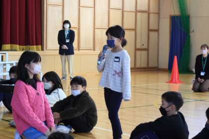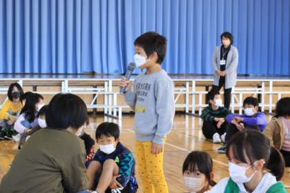 ミュージックタイムの最後は「インタビューコーナー」です。今日も手を挙げてくれた人の中から2名に発表してもらいました。全校児童の前で自分の感想を発表すると緊張しますが、これもいい勉強になると思います。よく頑張りました。