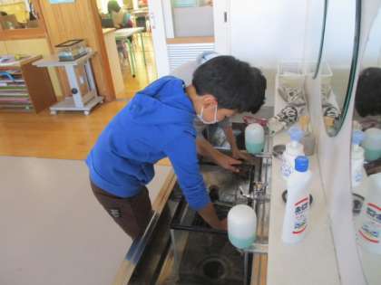 のびのびタイム(2・3限の業間)に、5年生が水槽を洗っていました。尋ねてみると、学級で育てているメダカの水槽だそうです。今朝の冷え込みはかなり厳しかったので、水槽を洗う手もかなり冷たかったと思います。