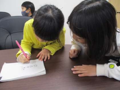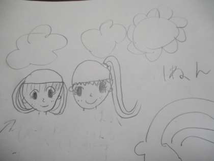 実は隣で6年生が算数プリントをやっていたので、女児2名はお絵かきを始めました。仕上がった絵は、こんな作品になりました。