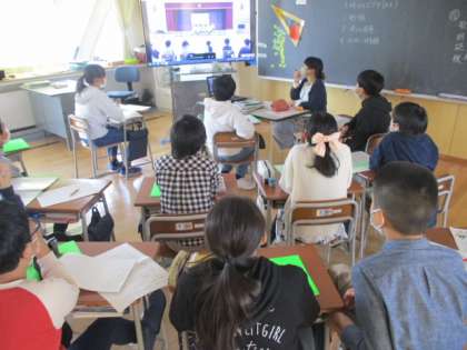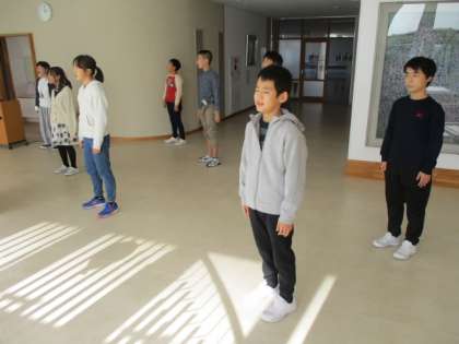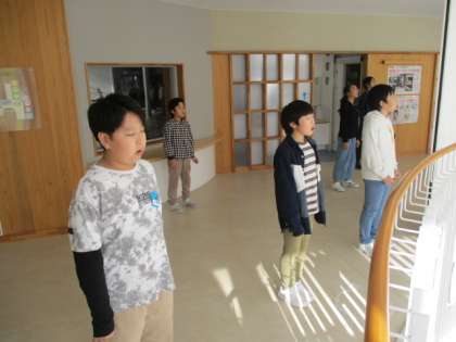 6年生も5時間目に学習発表会の練習をしました。前半には昨日のリハーサルのビデオを見て、改善箇所のチェックを行いました。後半は、児童玄関奥の吹き抜けを使っての練習です。たとえ体育館が使えなくとも、練習場所を確保する6年生の強さは立派です。