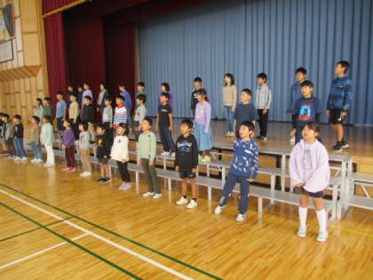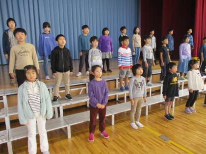 1時間目の2・3・4年生は体育館に集まり、本日行われる区域音楽会の最終調整に臨みました。朝の時間は少し声が出づらいものですが、みんなの発表に対する意気込みは十分伝わってきました。上滝小学校の代表として、ホールに美しい声を響かせてきてくださいね。